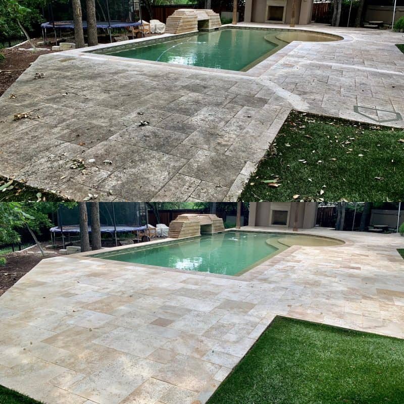 No. We take extra care to match the cleaning method to your surface type. Whether it’s delicate pool tile, natural stone, or concrete, our process is non-damaging, highly effective, and proven safe.